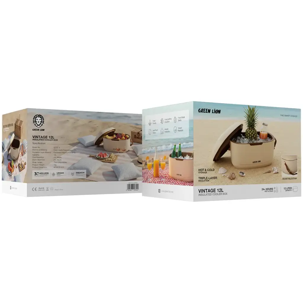 Keep your beverages and food fresh with the Green Lion Vintage 12L Insulated Cooler Box in elegant beige. This compact cooler features superior insulation technology to maintain optimal temperatures for hours, making it perfect for picnics, beach outings, camping trips, or outdoor gatherings. The 12-liter capacity provides ample space for drinks and snacks without being bulky. Its vintage-inspired design combines timeless aesthetics with practical functionality, while the durable construction ensures reliable performance season after season. Ideal for anyone seeking a stylish, dependable cooling solution for on-the-go adventures.
