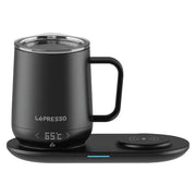 The Lepresso Smart Heating Mug is your only buddy to maintain your drink at the right temperature. This stylish mug, made from the finest stainless steel and featuring a smooth ceramic glaze inside, boasts a generous 355mL capacity, durability, and a refined finish. It features precise temperature control, enabling users to set their desired warmth between 35°C and 65°C, which will be displayed in real-time on its intuitive interface. Equipped with a strong 4000mAh battery, this mug guarantees long-lasting performance and is easily rechargeable via DC port or wirelessly via its charging base. Besides, it comes with overheat protection and leak-proof sealing for added practicality. Enjoy every sip from your coffee to tea or whatever drink you may prefer at home, in the office, or anywhere on the go with Lepresso Smart Heating Mug.