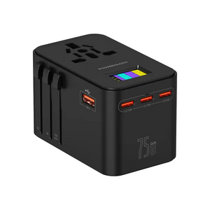 Powerology GaN 75W Universal Charger presents state-of-the-art technology in a compact, efficient form factor. With GaN technology, the charger can rapidly charge multiple devices simultaneously, stablely, and energy-savingly. With a highest rated power output of 2500W and a broad range input of 100-250V, the charger supports diverse charging requirements. This universal charger features USB-C1, C2, and C3 outputs with 3.3-11V/5A (PPS) and a maximum of 70W per port, while the USB-A output offers a maximum of 60W. Charging a laptop, smartphone, or another device, the Powerology GaN 75W Universal Charger adjusts with a variety of combinations of outputs, such as USB-C1 + USB-A, offering 45W + 30W. The charger also includes a real-time power display, which keeps you updated on how much charge is coming through, and a spare fuse for good measure. With its PD 70W, it fast charges laptops from 0% to 60% within 35 minutes.